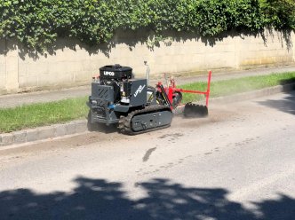 Das Gerät wurde speziell für die umweltgerechte Unkrautbeseitigung an Bordsteinkanten und auf Pflasterflächen konzipiert. Die rotierenden Bürsten kommen in jeden Winkel und entfernen das Unkraut zuverlässig. Hartnäckiges Unkraut wird mehrfach in verschiedene Richtungen gezogen und an der Oberfläche abgelegt. Danach kann das Unkraut abgefegt werden. Somit ist nicht nur das Ergebnis perfekt. Weil nichts auf der Oberfläche verbleibt, hinterlässt das Gerät auch einen sauberen Eindruck. Der Bürstendruck und der Neigungswinkel auf die Bürste sind verstellbar.